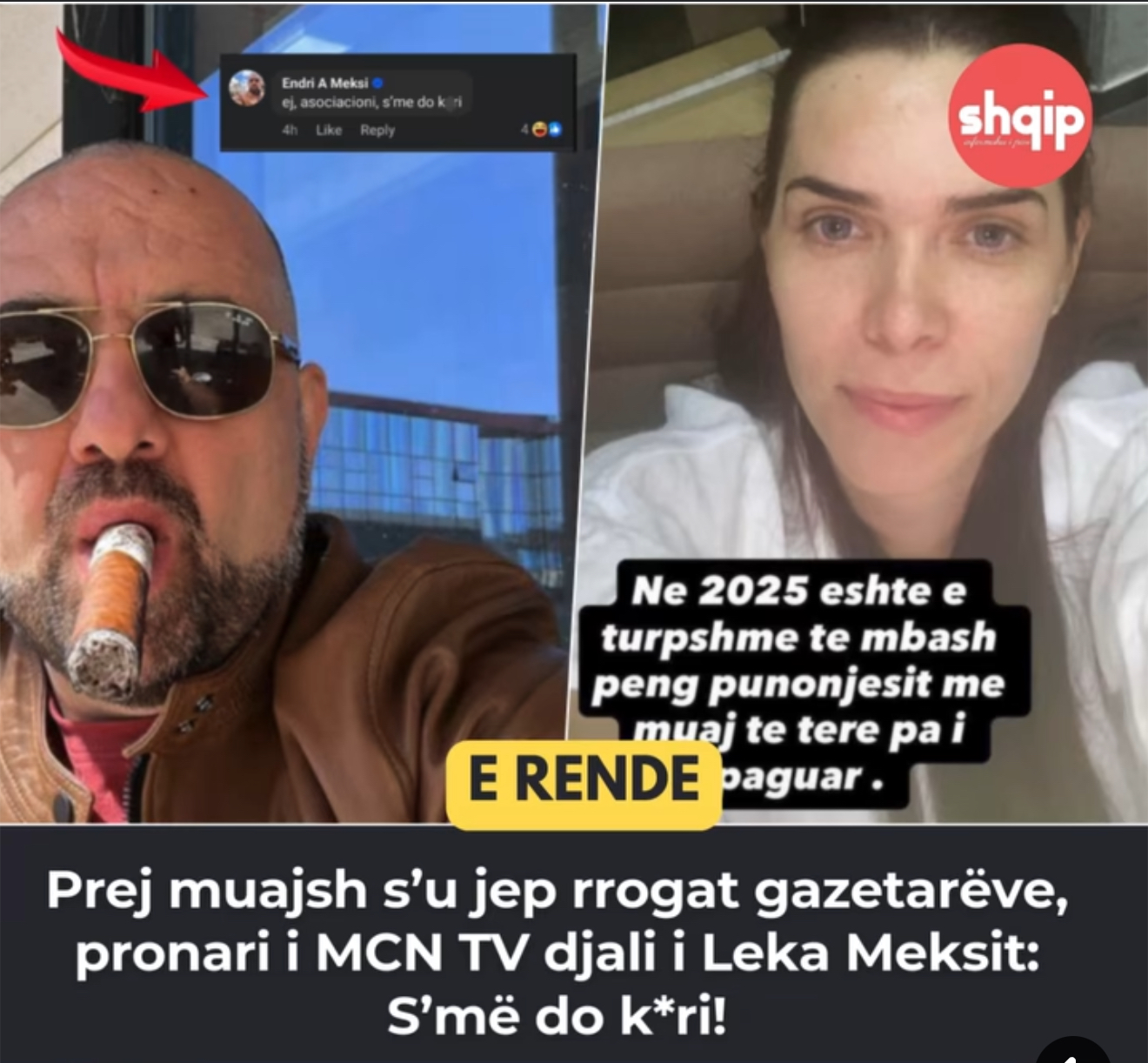 Pas akuzave të shumta publike për mosdhënie pagash prej muajsh, pronari i televizionit ka reaguar me një gjuhë të papranueshme ndaj një postimi të bërë në Facebook nga Asociacioni i Gazetarëve të Shqipërisë, ku trajtohej pikërisht ky problem. Në vend të një sqarimi apo përgjegjësie, Meksi ka komentuar literalisht: “S’më do k*ri!”.